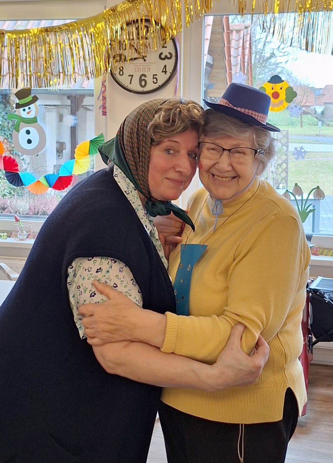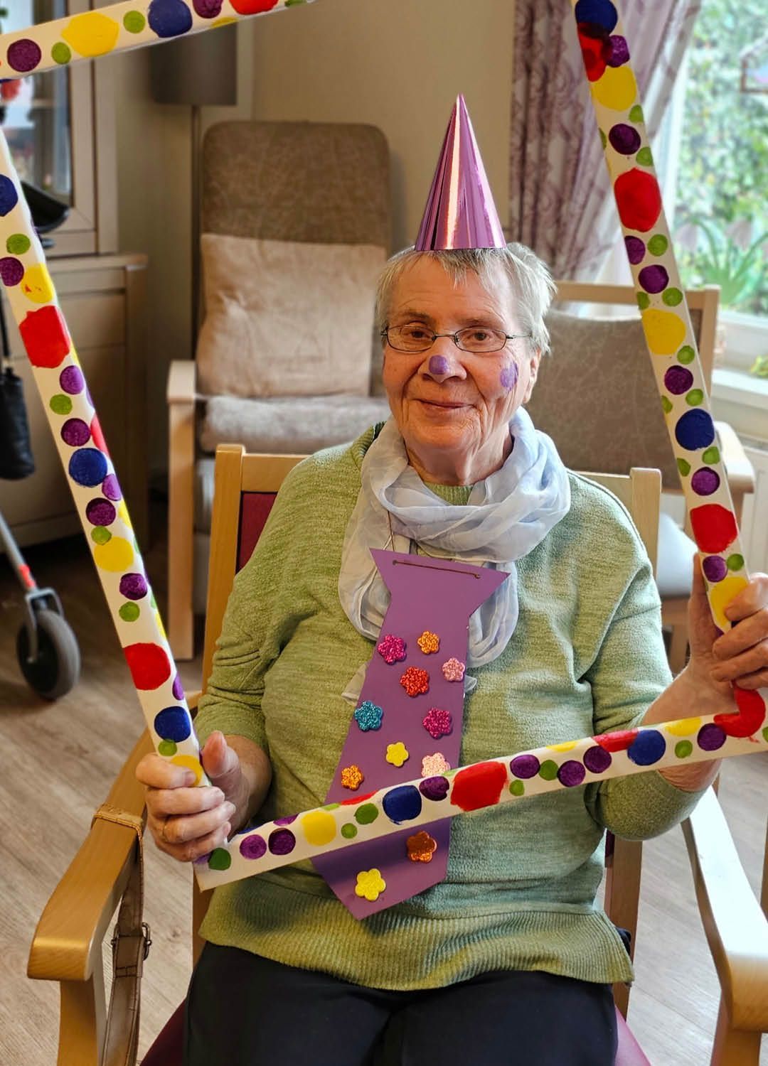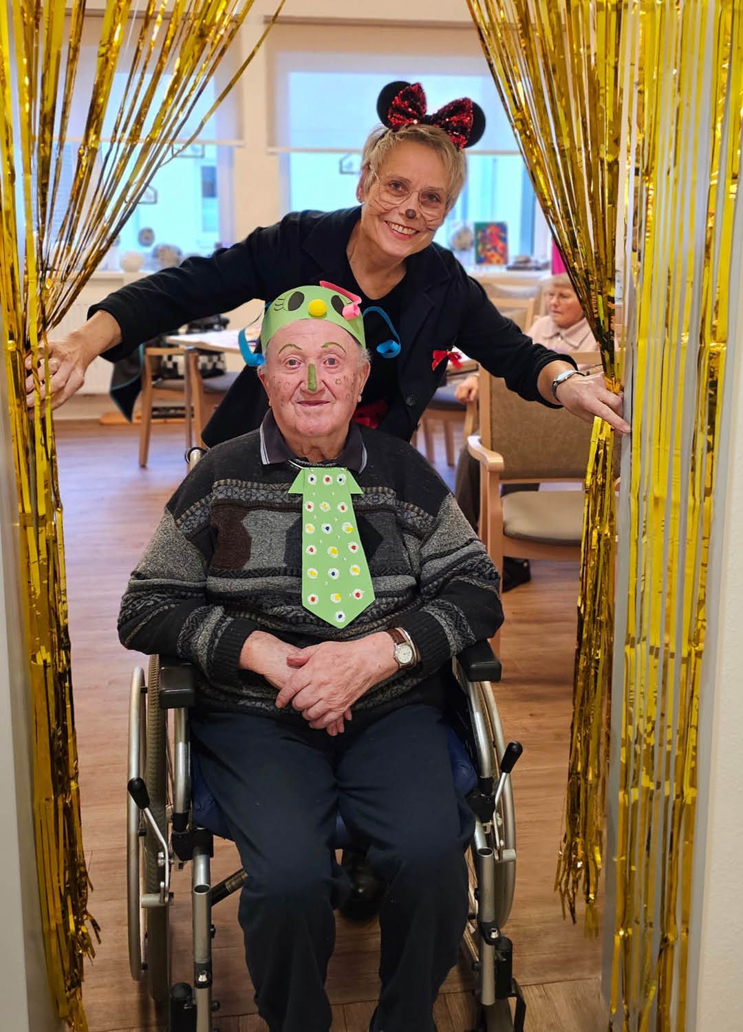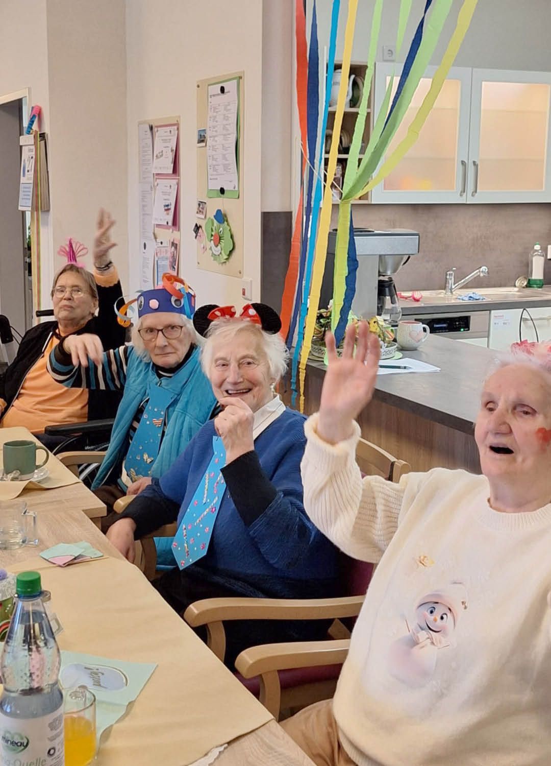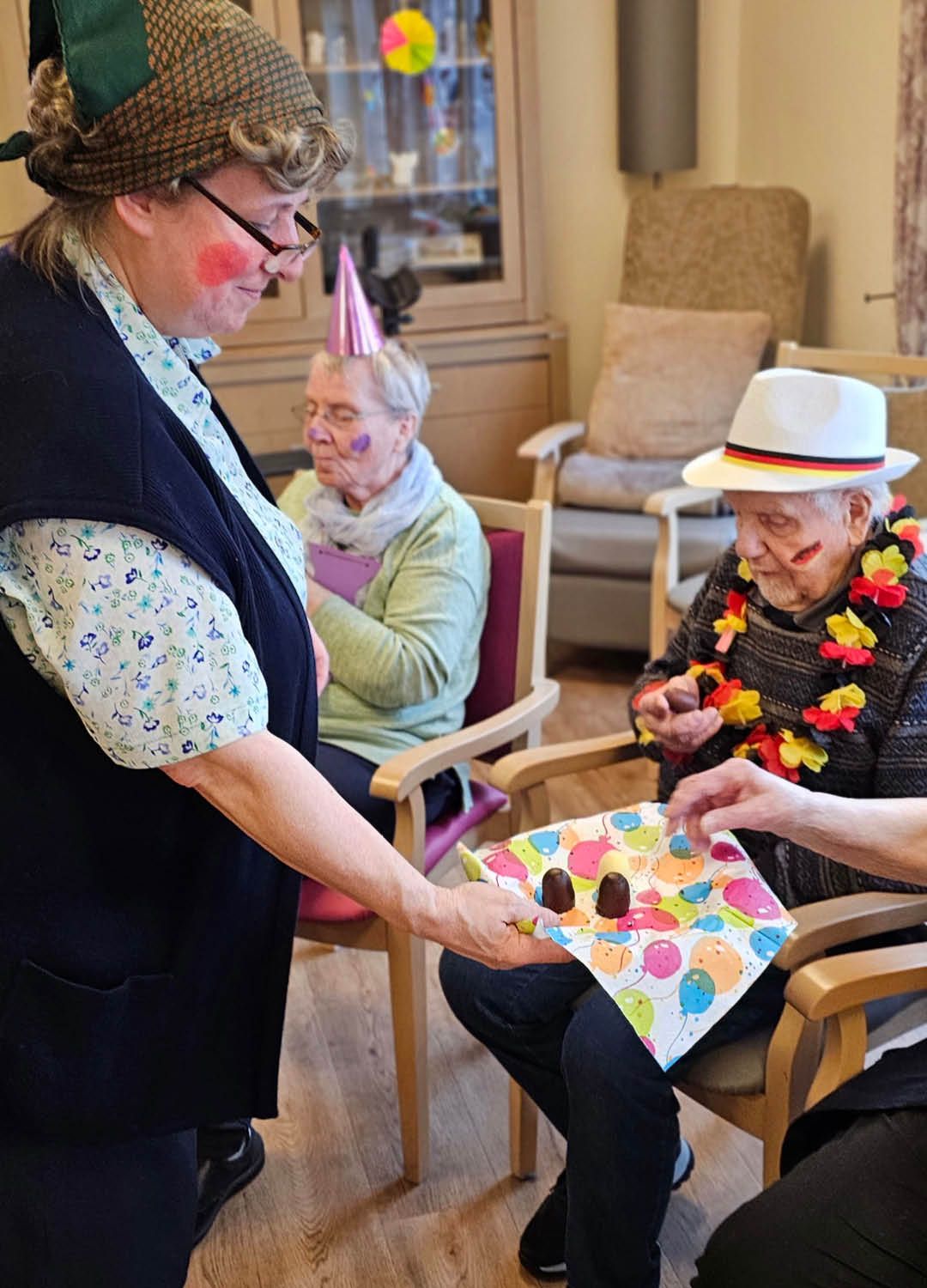Zwei Tage voller Spaß, Musik und guter Laune – so haben wir in unserer Tagespflege Ulmenhof Karneval gefeiert! Unsere Tagesgäste ließen sich begeistert von den Mitarbeitenden bunt schminken und wählten aus einer großen Auswahl an Kopfbedeckungen, darunter kleine Hüte, selbstgebastelte Masken und kreative Krawatten, die zuvor mit viel Liebe hier entstanden sind.