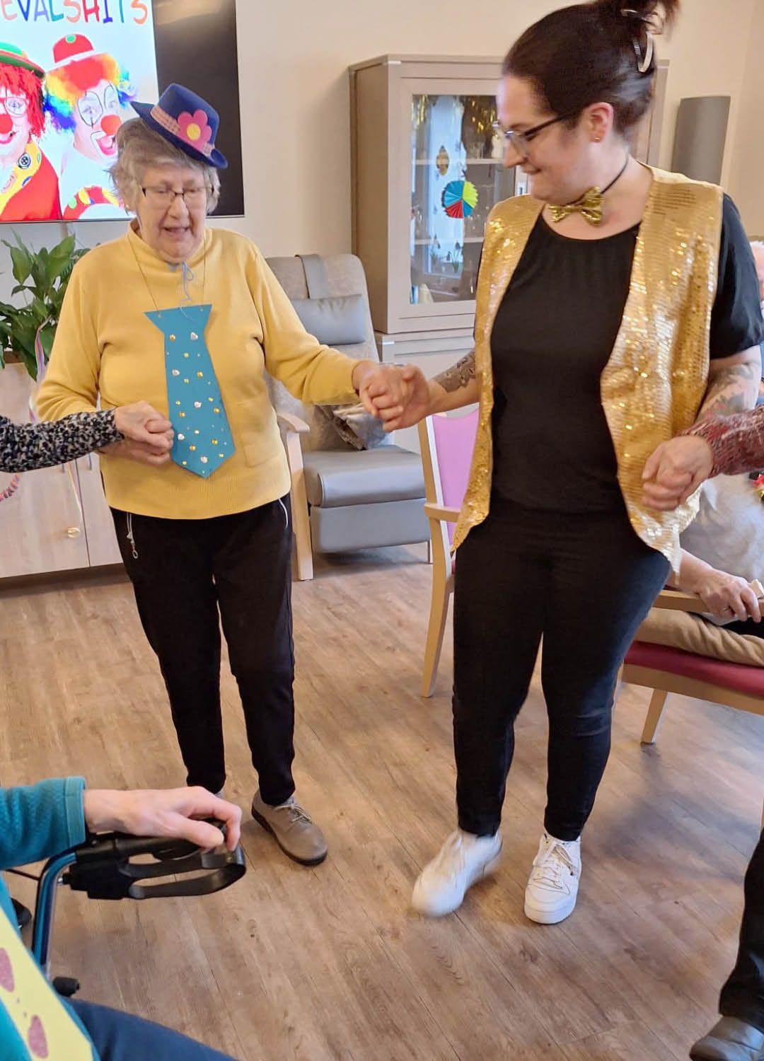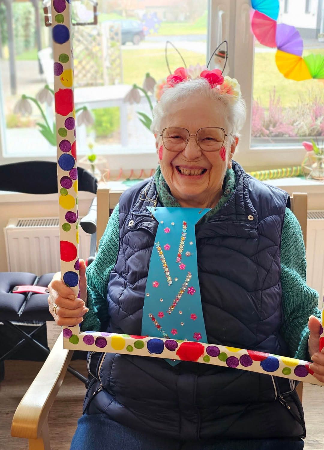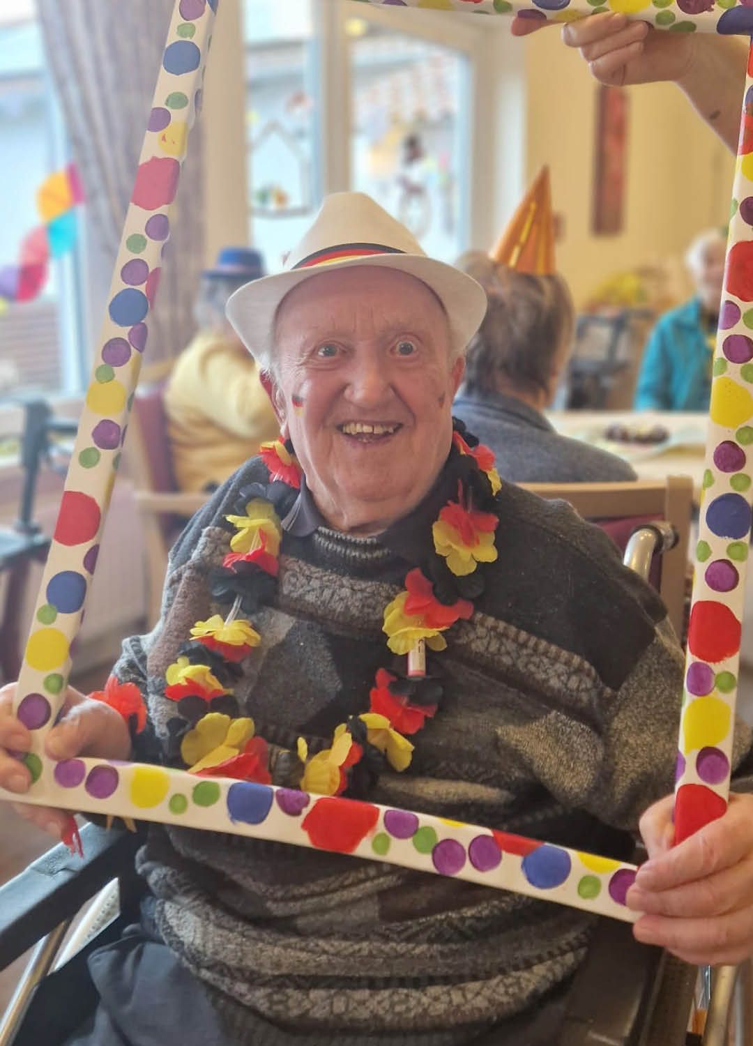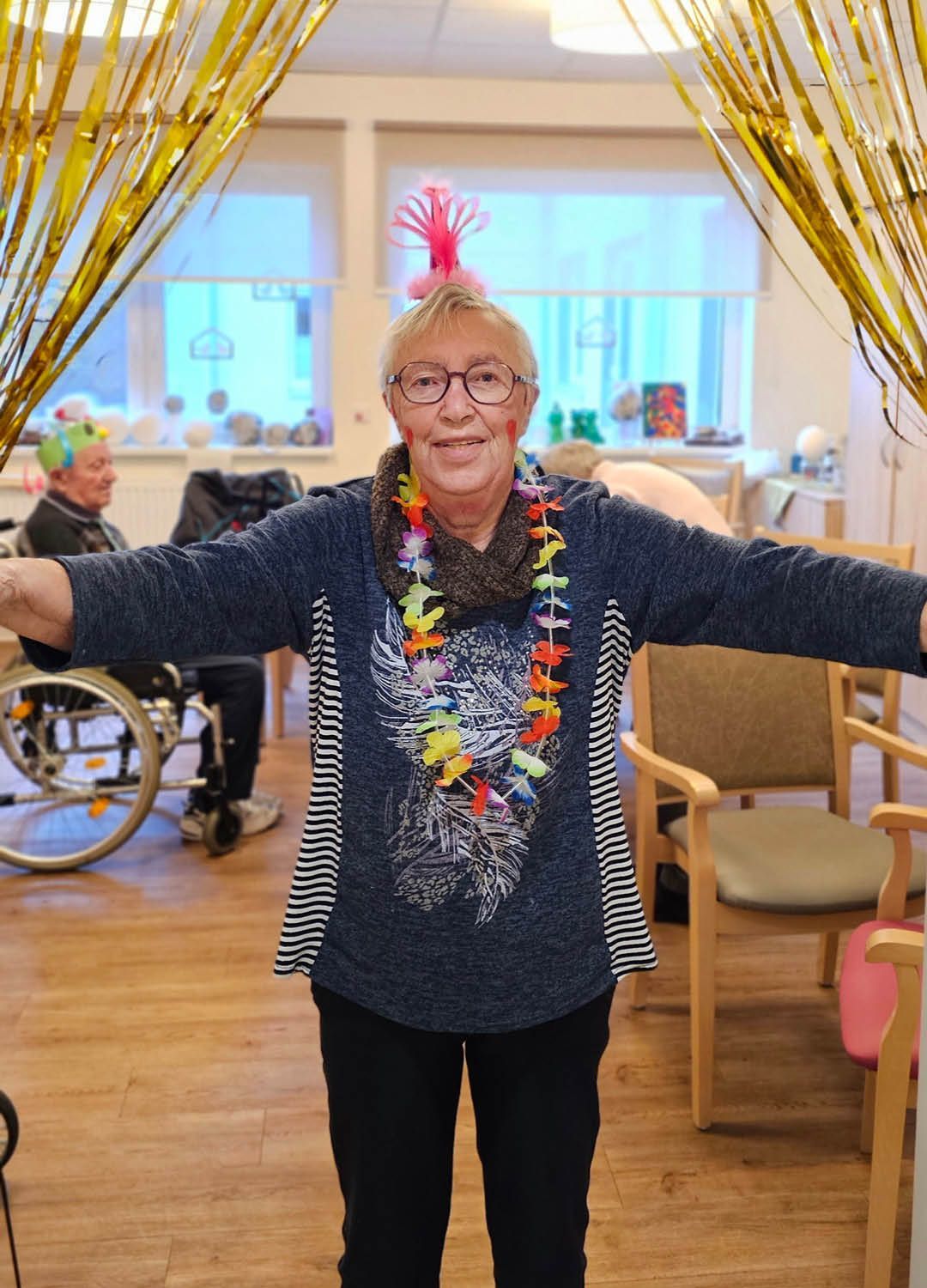 Zwei Tage voller Spaß, Musik und guter Laune – so haben wir in unserer Tagespflege Ulmenhof Karneval gefeiert! Unsere Tagesgäste ließen sich begeistert von den Mitarbeitenden bunt schminken und wählten aus einer großen Auswahl an Kopfbedeckungen, darunter kleine Hüte, selbstgebastelte Masken und kreative Krawatten, die zuvor mit viel Liebe hier entstanden sind.