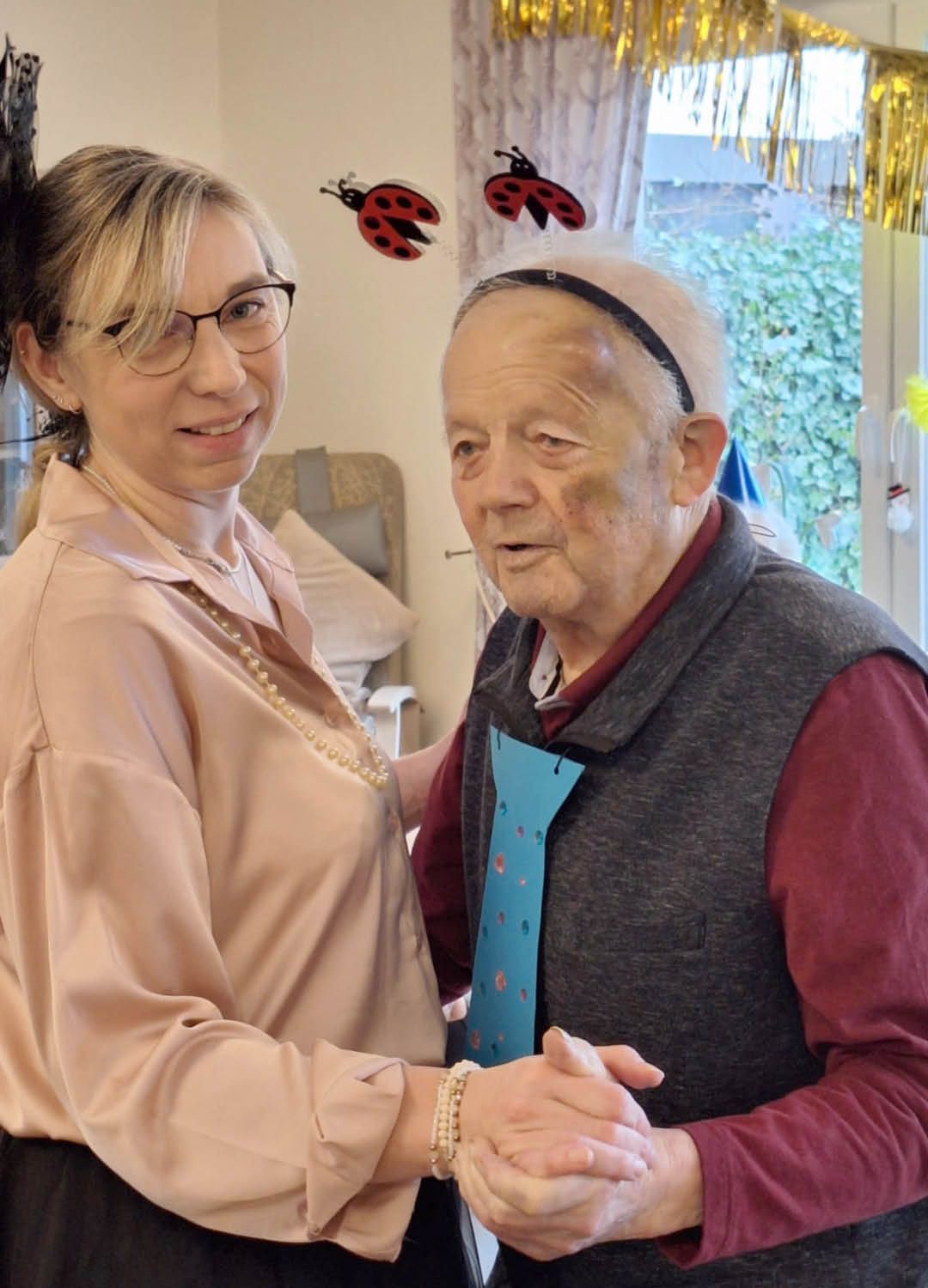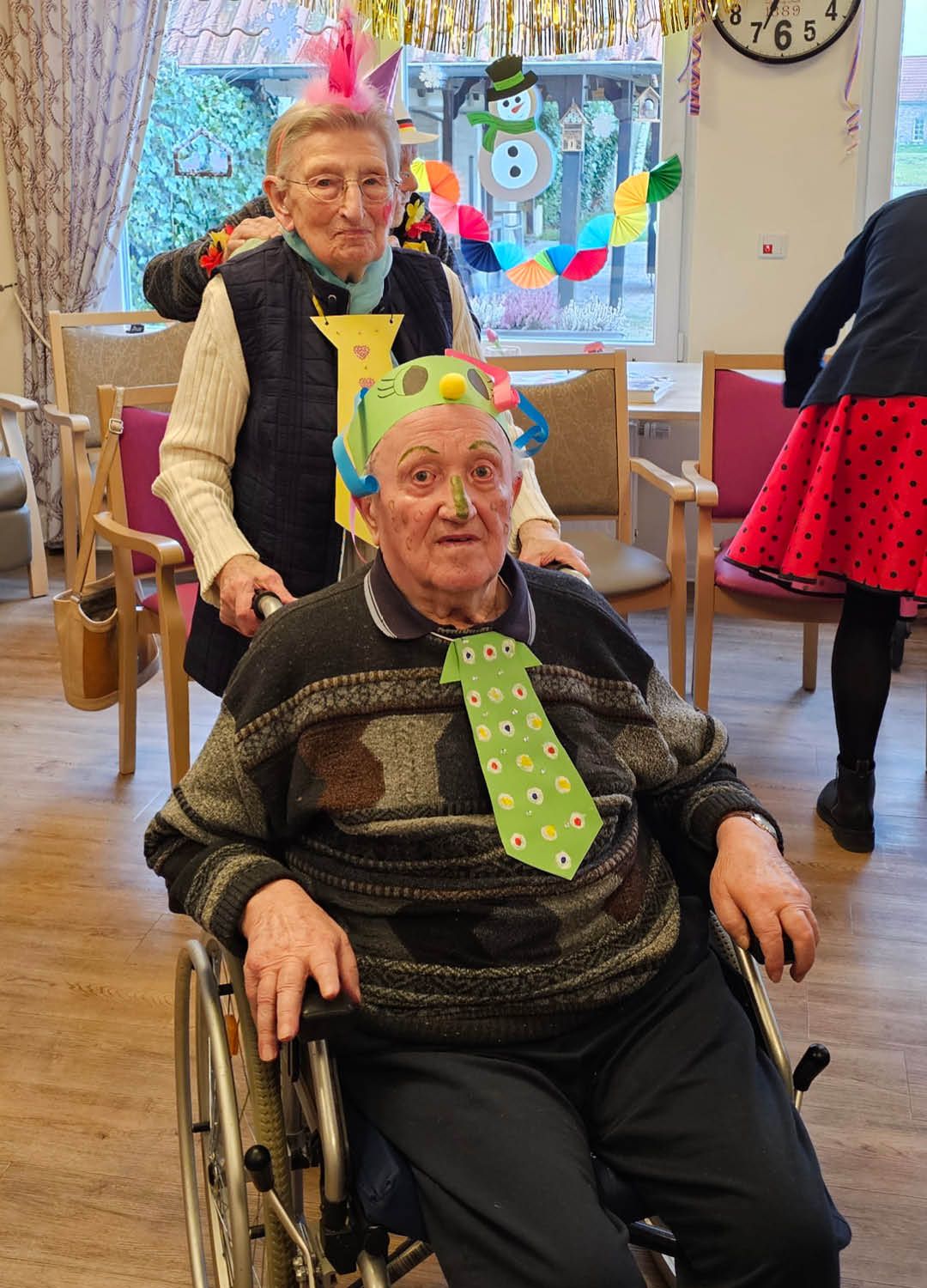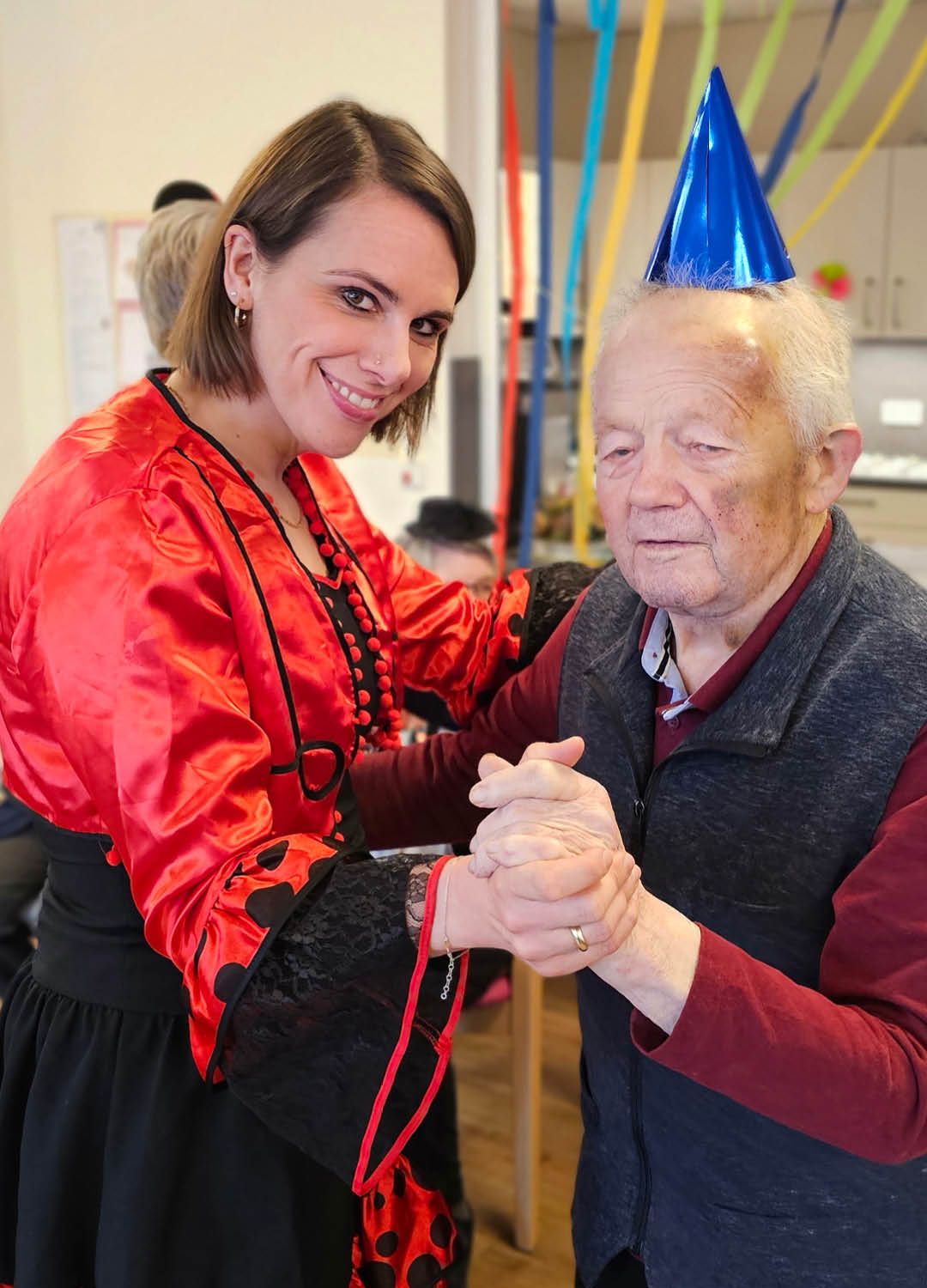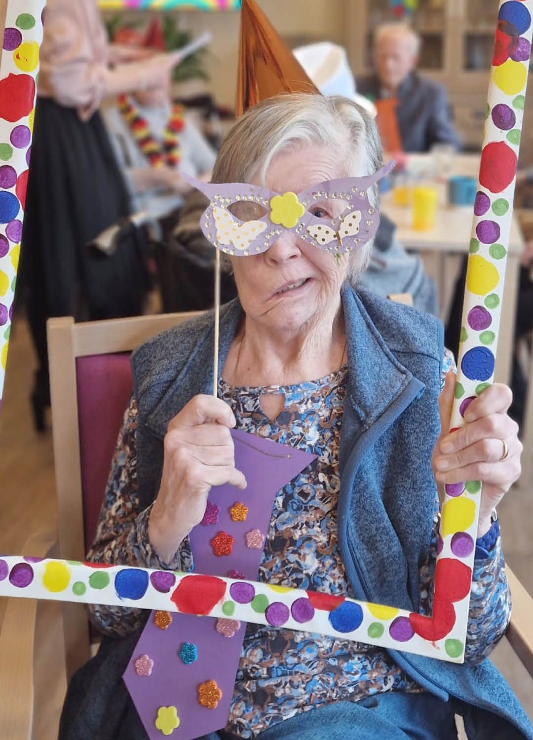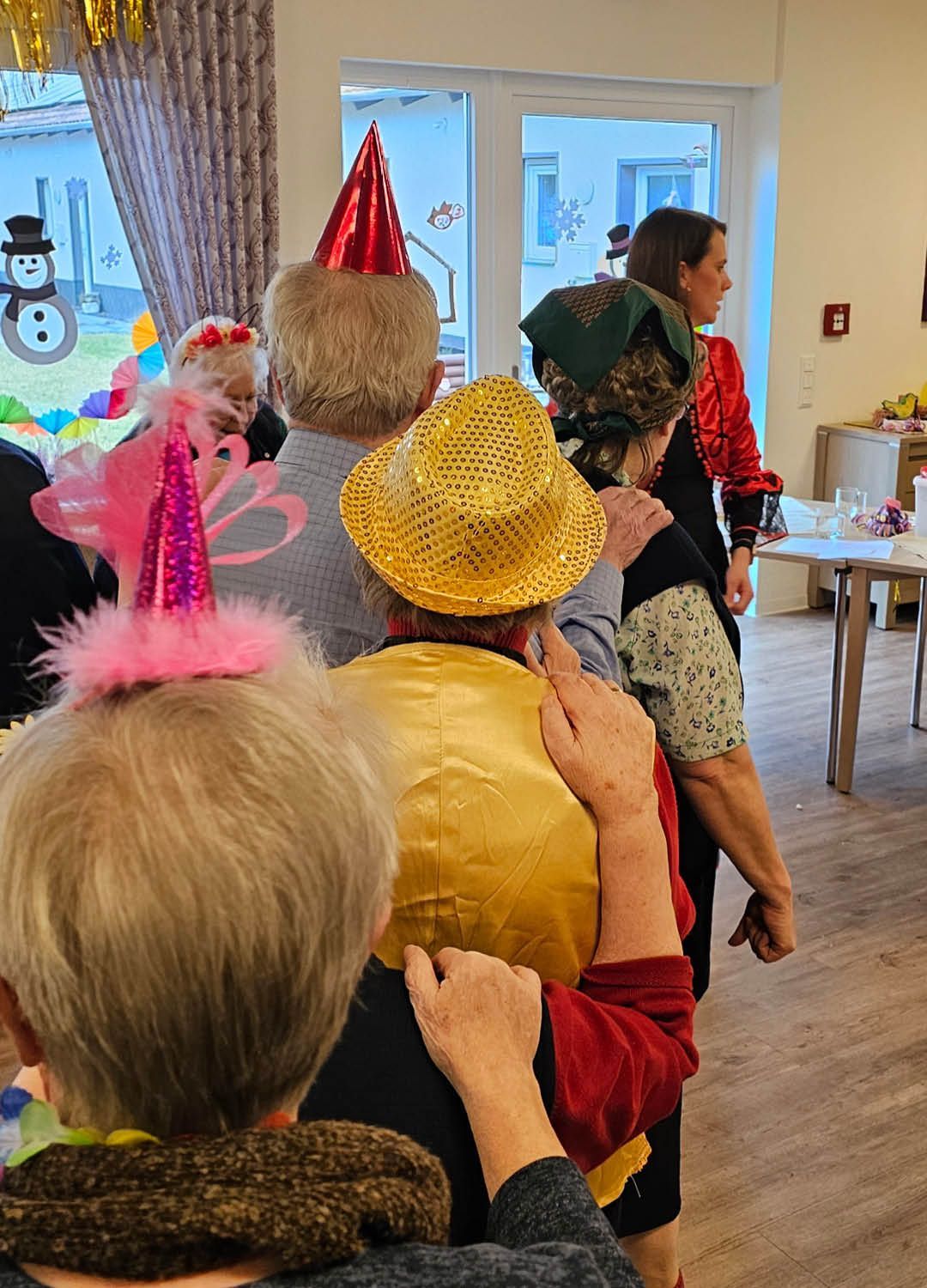Zwei Tage voller Spaß, Musik und guter Laune – so haben wir in unserer Tagespflege Ulmenhof Karneval gefeiert! Unsere Tagesgäste ließen sich begeistert von den Mitarbeitenden bunt schminken und wählten aus einer großen Auswahl an Kopfbedeckungen, darunter kleine Hüte, selbstgebastelte Masken und kreative Krawatten, die zuvor mit viel Liebe hier entstanden sind.