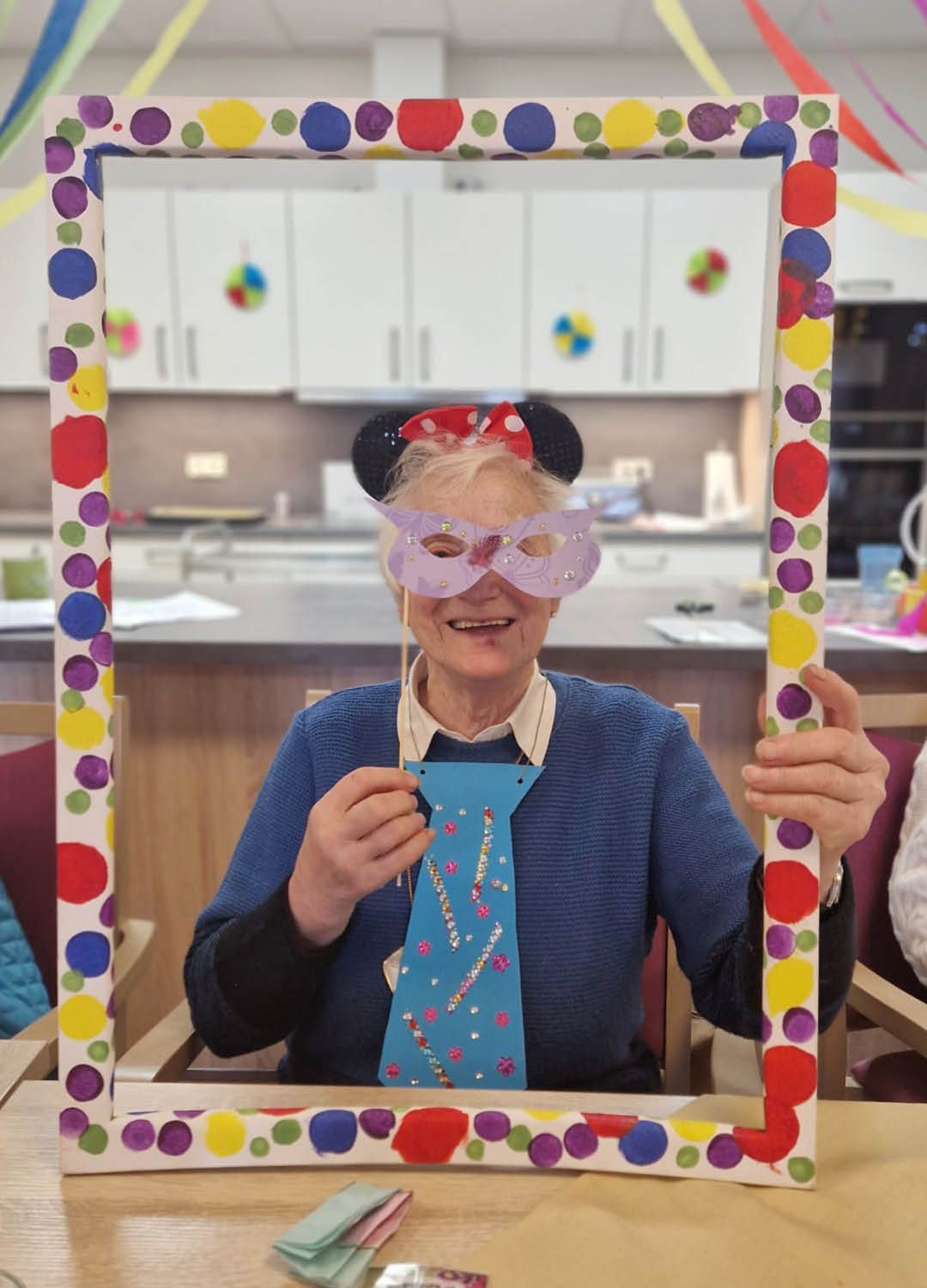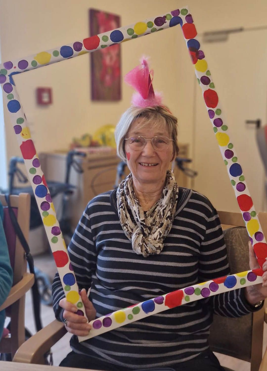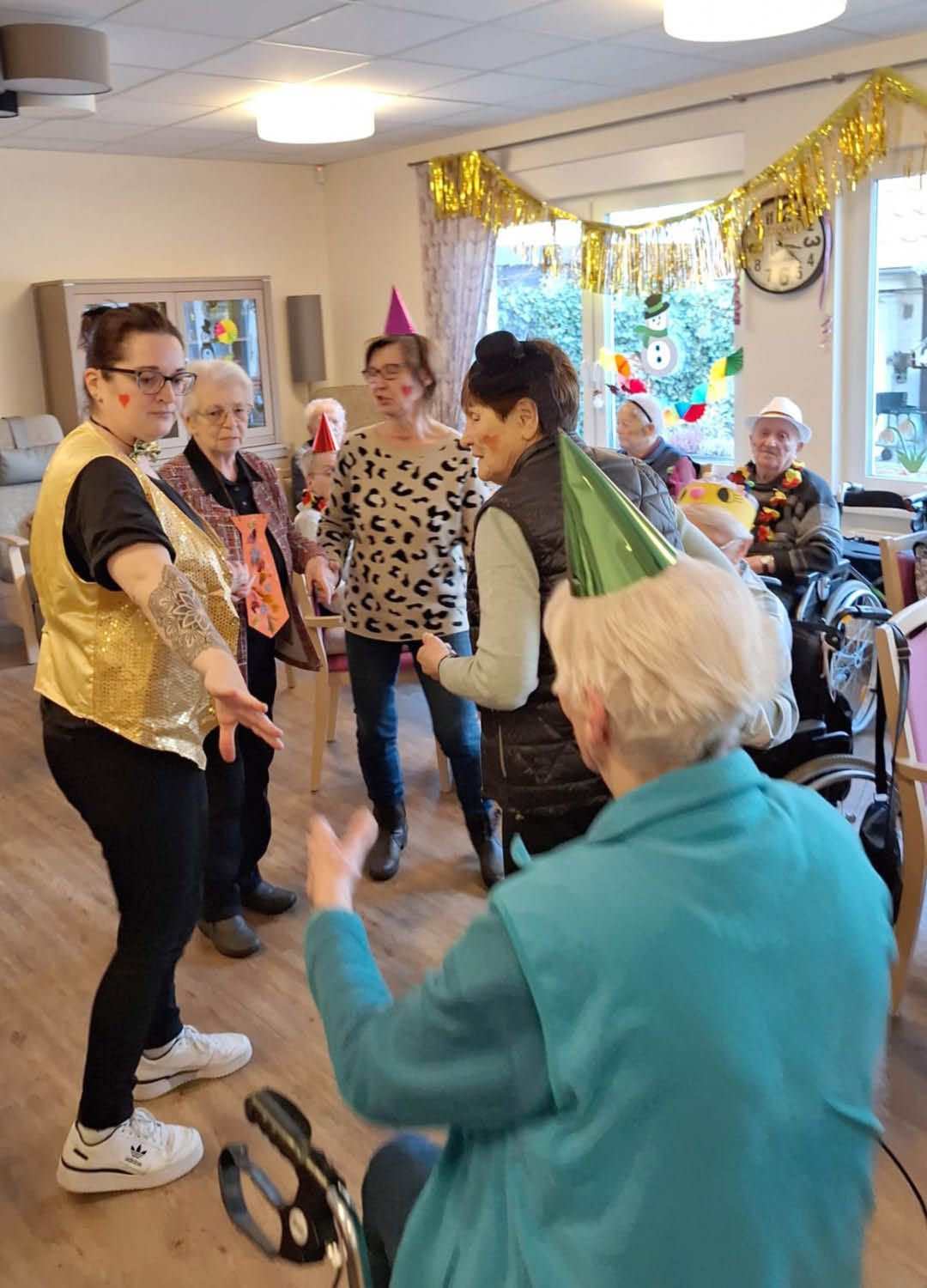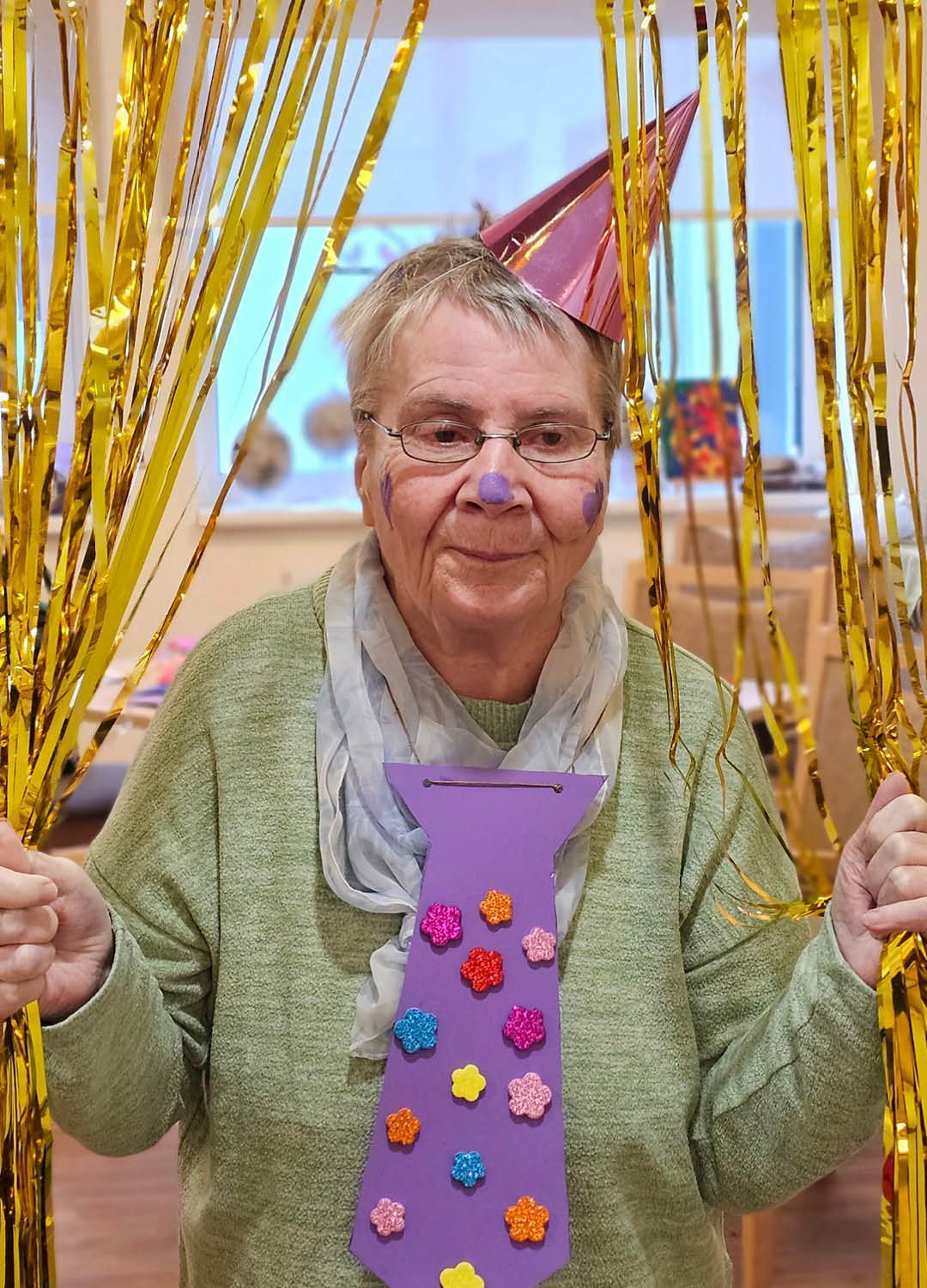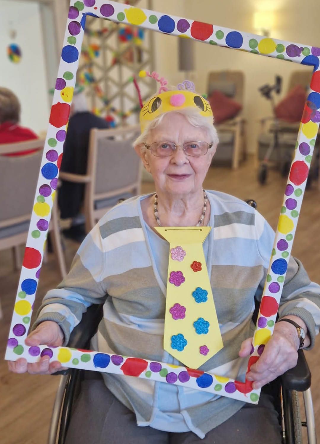 Zwei Tage voller Spaß, Musik und guter Laune – so haben wir in unserer Tagespflege Ulmenhof Karneval gefeiert! Unsere Tagesgäste ließen sich begeistert von den Mitarbeitenden bunt schminken und wählten aus einer großen Auswahl an Kopfbedeckungen, darunter kleine Hüte, selbstgebastelte Masken und kreative Krawatten, die zuvor mit viel Liebe hier entstanden sind.