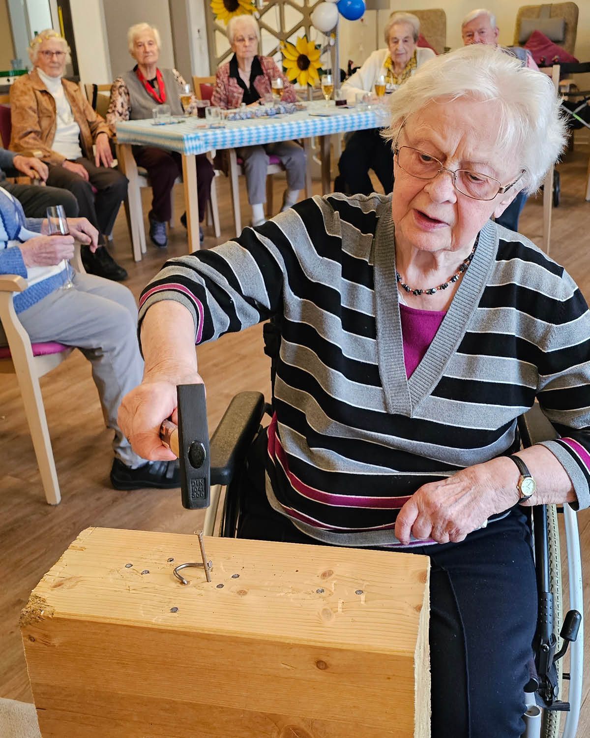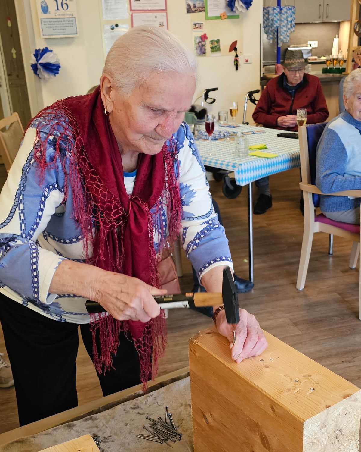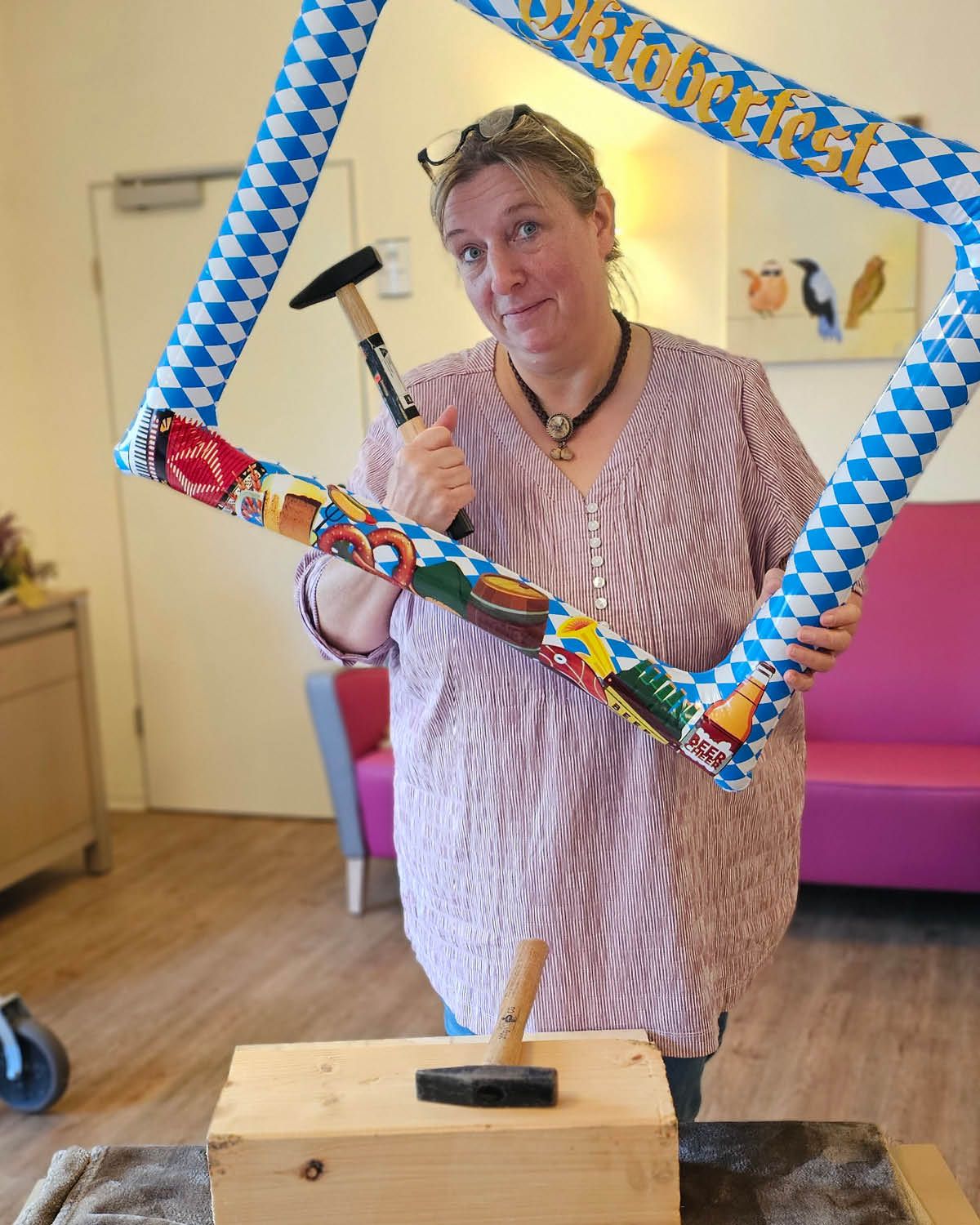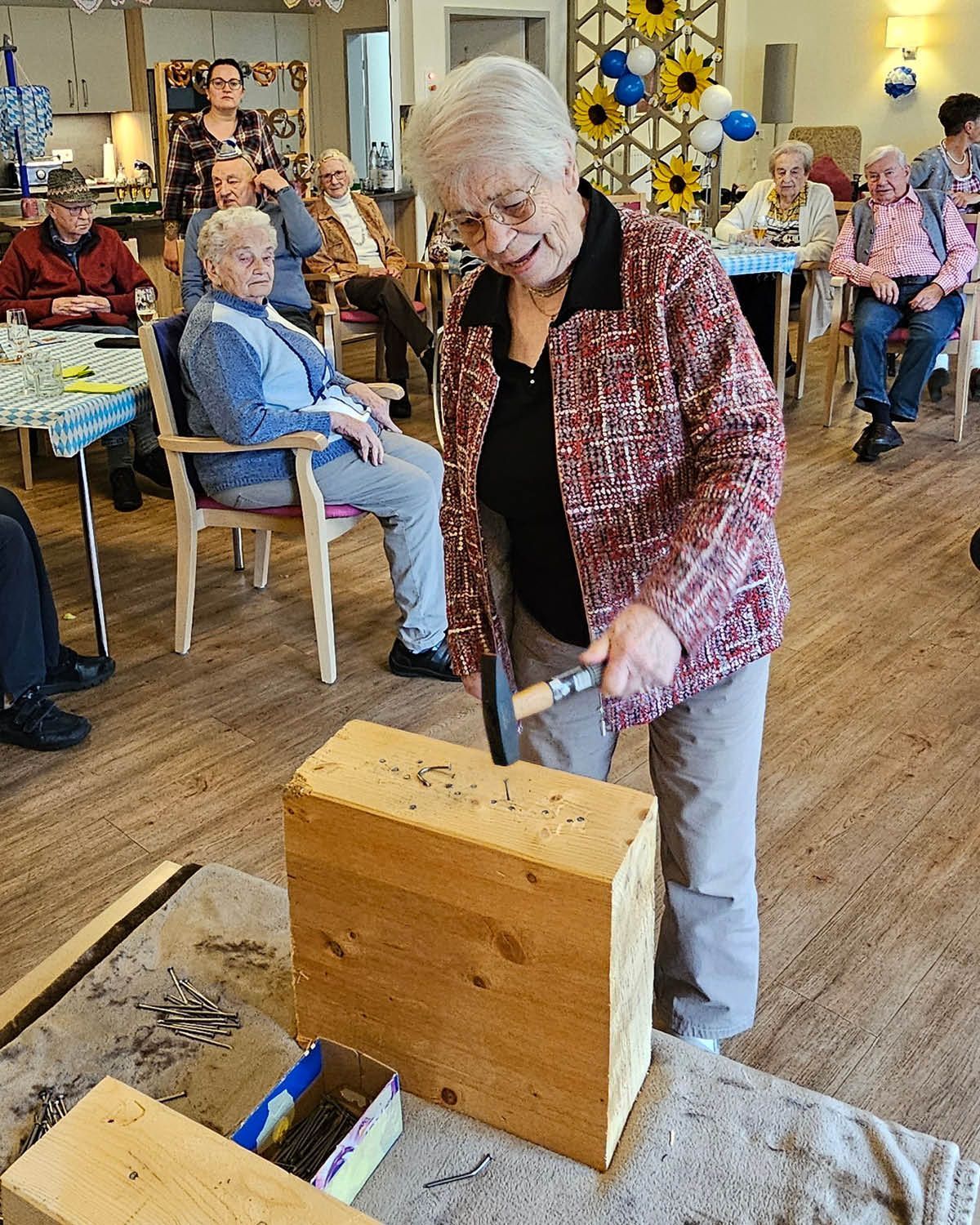 Es wurde genagelt, was das Zeug hält, geschunkelt bis die Bänke wackelten und aus voller Kehle gesungen! Bei unserer Bewegungsgeschichte und den „verdrehten Sprichwörtern" rund ums Oktoberfest ging die Post ab – gelacht wurde, dass die Tränen kullerten!