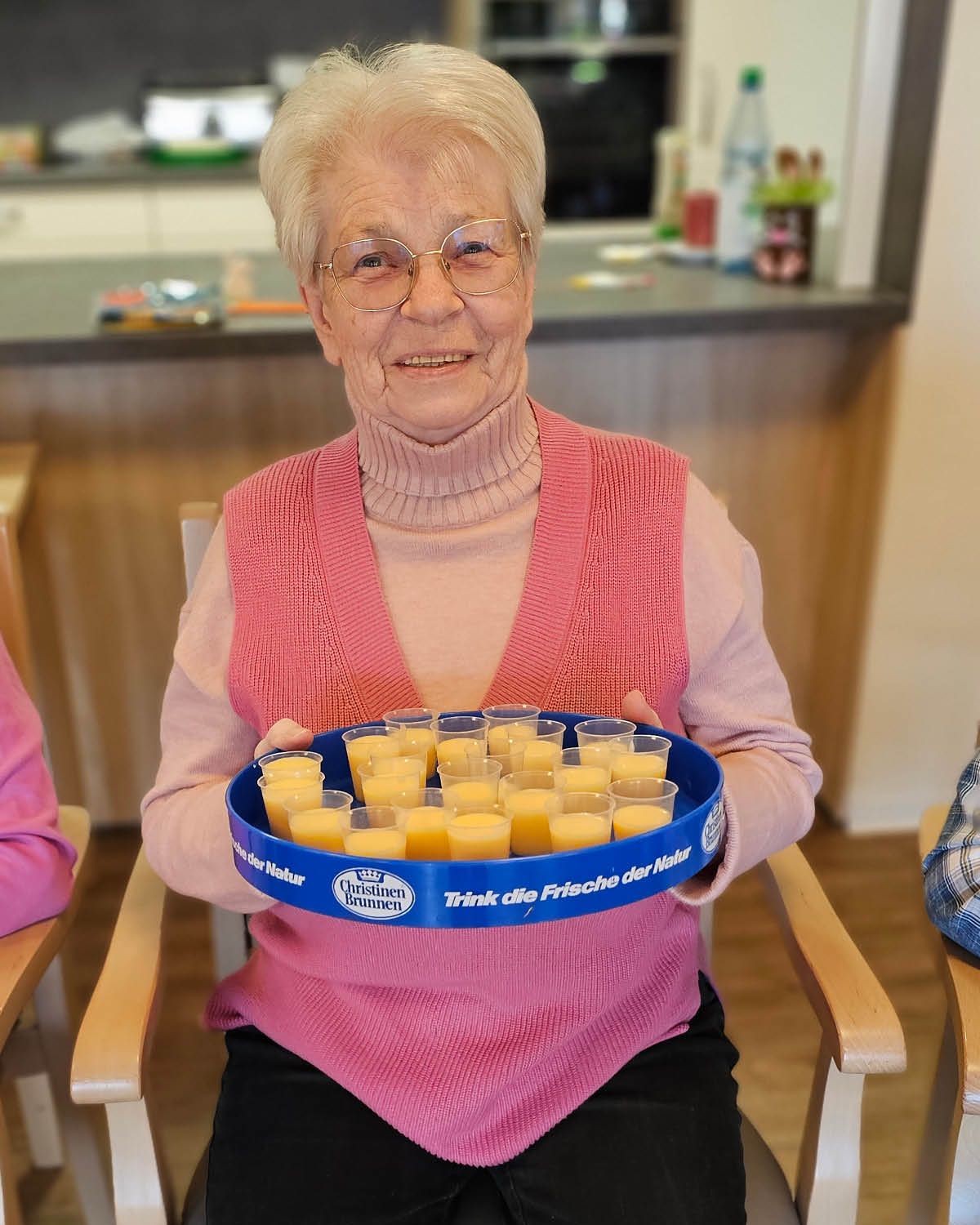 Ein ganz besonderer Moment folgte anschließend: Frau Inge Sch. durfte verkünden, dass sie in der Nacht Uroma geworden ist. Dieses freudige Ereignis wurde natürlich gebührend gefeiert – mit einem kleinen Eierlikör auf das neue Leben.