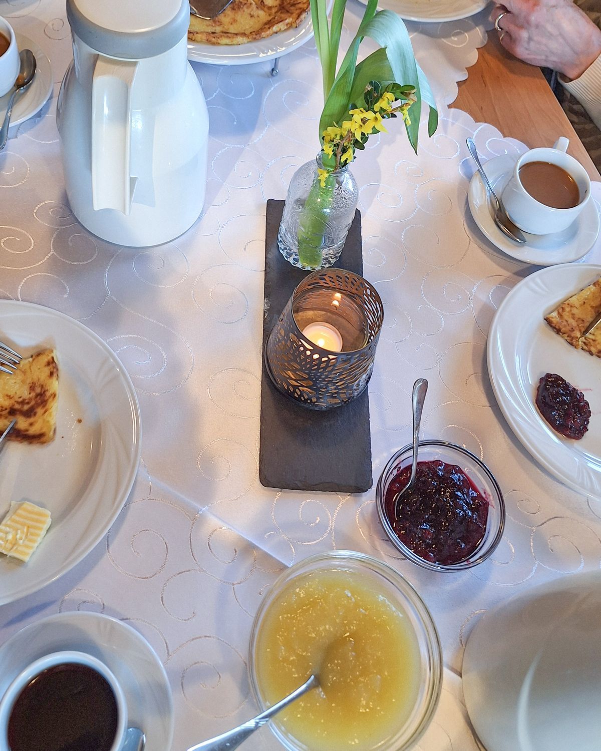 Als dann schließlich der frisch zubereitete Pickert, Kaffee und ein kühles Getränk auf dem Tisch standen, kehrte eine genussvolle Ruhe ein. Mit viel Freude wurde geschlemmt, und hier und da hörte man leise Worte wie: „Ist das köstlich!“ oder „Das hat man ja nicht alle Tage.“